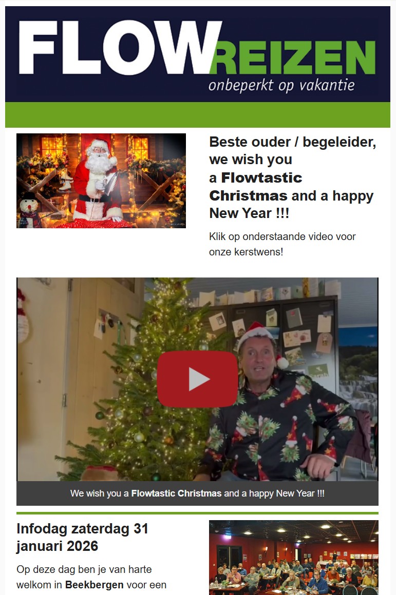 Neem contact op met Flow ReizenFlow Reizen stuurt regelmatig nieuwsbrieven om iedereen op de hoogte te houden van het laatste nieuws.