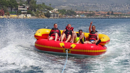 - Stranddagen met veel zonnen, zwemmen, watersporten als parasailen en bananenboot varen