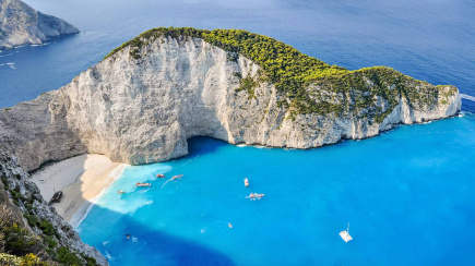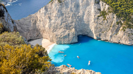 Het eiland Zakynthos behoort tot de mooiste parels van Griekenland. Het veelzijdige eiland staat bekend om het beroemde Navagiostrand met het scheepswrak, imposante kliffen, idyllische baaien met helderblauw water en grotten die je per boot kunt verkennen. In de groene binnenlanden vind je olijfgaarden, traditionele dorpjes en schilderachtige kerken die de tijd lijken te hebben stilgezet. Vanuit de haven van Zakynthos-Stad vertrekken dagelijks boottochten langs kleine eilandjes en afgelegen stranden, een ideale manier om de ongerepte schoonheid van de Ionische Zee te ontdekken.
