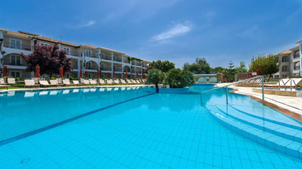 Het hotel ligt op slechts 1 kilometer van het rustige dorpje Kalamaki en 500 meter van het prachtige strand. Het is een rustiger hotel, maar als we de drukte willen opzoeken, dan zijn we in 15 minuutjes rijden in de bruisende Zakynthos-Stad.